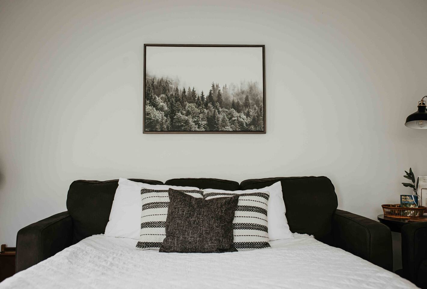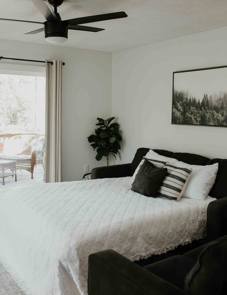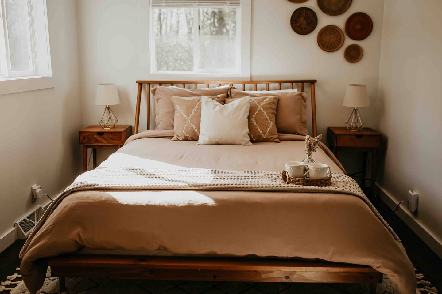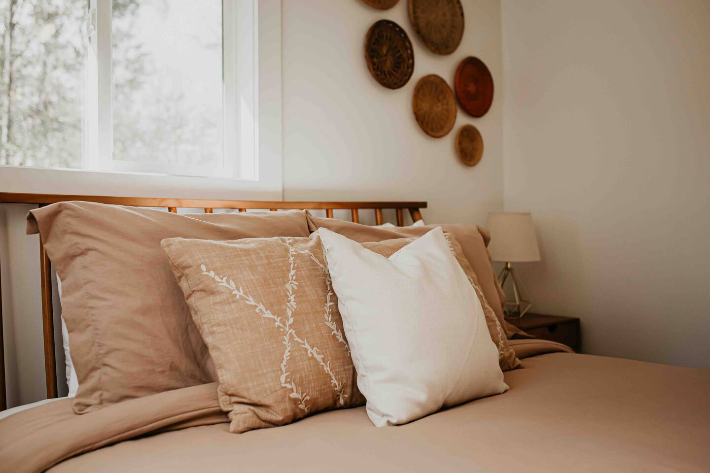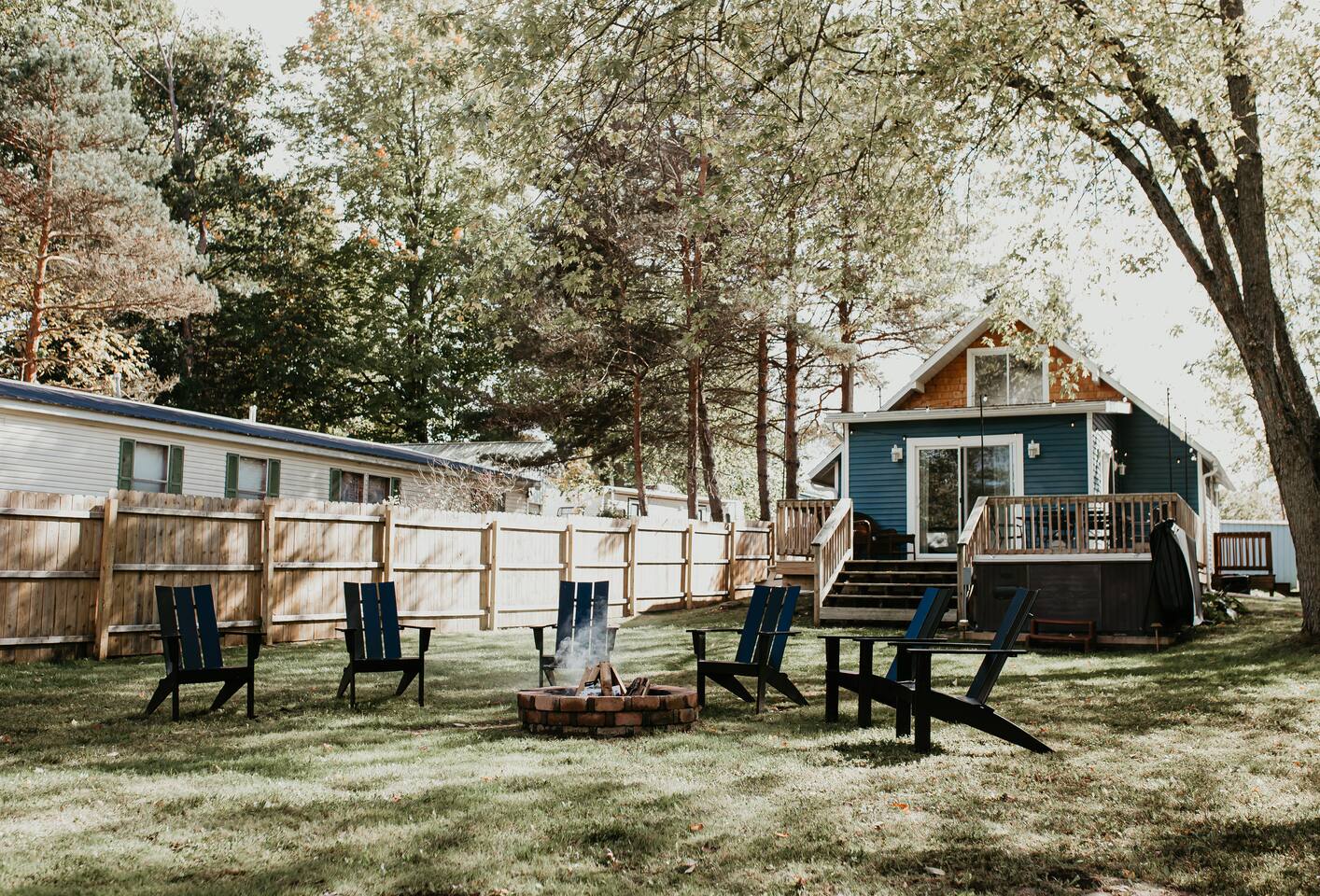 Our modern-rustic cottage is designed for comfort and connection. The open-plan living area features a cozy couch with a pull-out memory foam mattress, a Roku TV for your streaming services, and a collection of board games for fun-filled evenings. Gather for meals at the large dining room table with seating for your entire group. KEY FEATURES: Fully Equipped Kitchen: Prepare delicious home-cooked meals with a full suite of cookware, a coffee pot, a tea kettle, and a blender. Please note, the cottage uses hard well water; we recommend bringing bottled water for drinking. Primary Bedroom: Unwind in a comfortable queen bed with a hotel-grade mattress. This room also includes a desk for any work needs and a safe for your valuables. Loft Bedroom: The cozy loft, overlooking the lake, offers two twin beds—a perfect space for kids or additional guests. Renovated Bathroom: Refresh in the newly renovated, modern bathroom, complete with a walk-in shower. We provide shampoo, conditioner, body wash, Q-tips, and a full set of bath, makeup, and beach towels. OUTDOOR LIVING & LAKE ACCESS: Step outside to your private oasis. The spacious deck includes a propane Blackstone grill and comfortable seating, with string lights for magical evenings. After a day of adventure, soak in the luxurious 6-person hot tub overlooking the peaceful waters. Your stay includes direct access to Lake Forest for great fishing or exploring with our provided kayaks and a pedal boat. Please note: Kayaks and the pedal boat are available in the Spring/Summer and stored for the winter starting November 1. The lake has a natural shoreline with lily pads and mud. We provide beach towels but strongly recommend you bring water shoes. For swimming, we suggest using a kayak or the pedal boat to reach deeper waters.