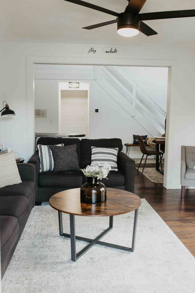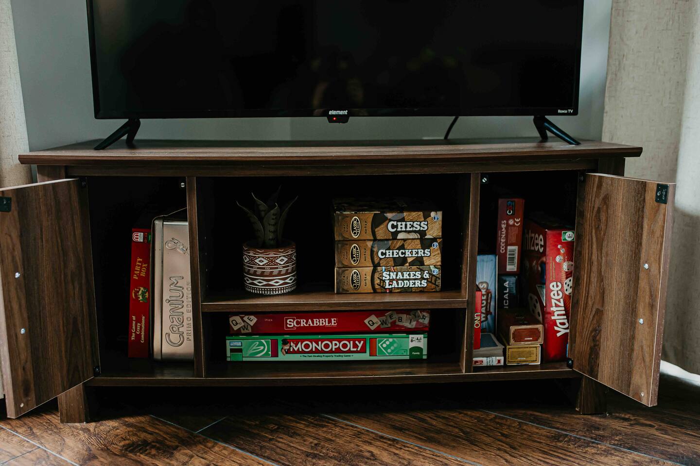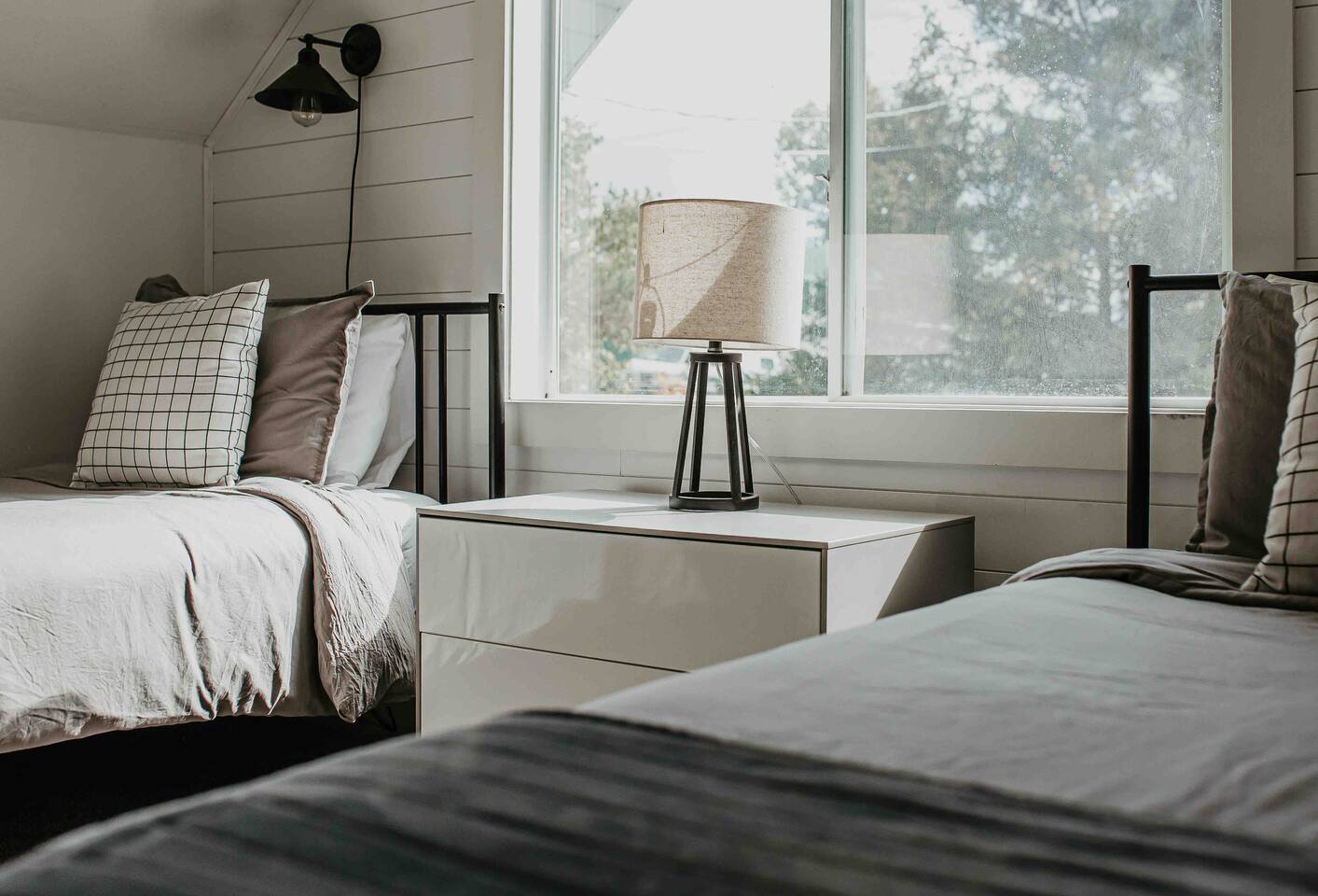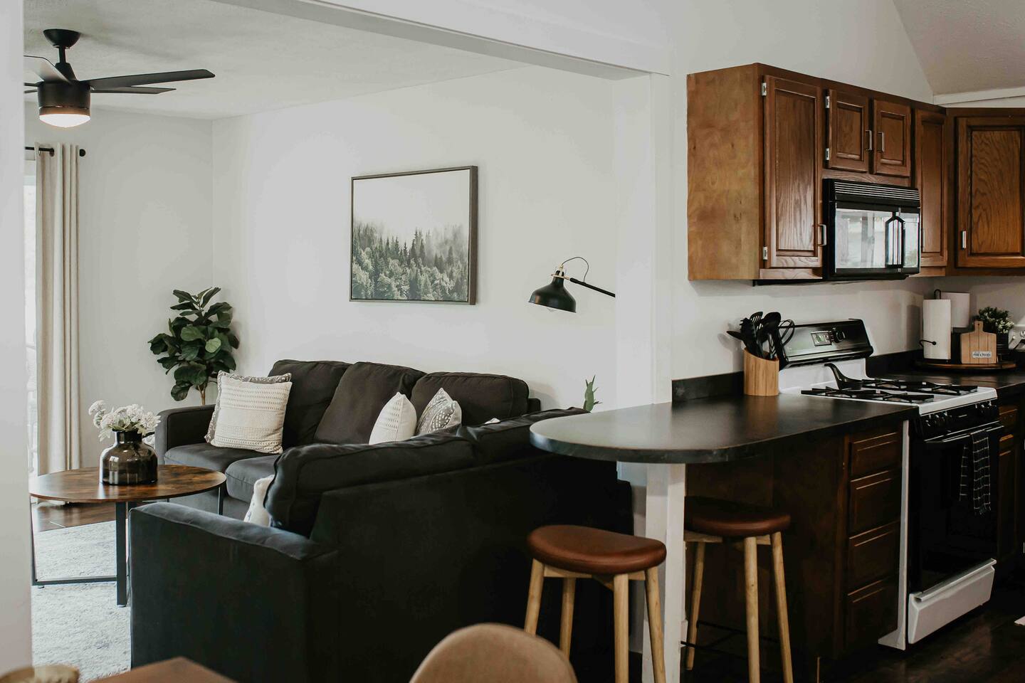 Our modern-rustic cottage is designed for comfort and connection. The open-plan living area features a cozy couch with a pull-out memory foam mattress, a Roku TV for your streaming services, and a collection of board games for fun-filled evenings. Gather for meals at the large dining room table with seating for your entire group. KEY FEATURES: Fully Equipped Kitchen: Prepare delicious home-cooked meals with a full suite of cookware, a coffee pot, a tea kettle, and a blender. Please note, the cottage uses hard well water; we recommend bringing bottled water for drinking. Primary Bedroom: Unwind in a comfortable queen bed with a hotel-grade mattress. This room also includes a desk for any work needs and a safe for your valuables. Loft Bedroom: The cozy loft, overlooking the lake, offers two twin beds—a perfect space for kids or additional guests. Renovated Bathroom: Refresh in the newly renovated, modern bathroom, complete with a walk-in shower. We provide shampoo, conditioner, body wash, Q-tips, and a full set of bath, makeup, and beach towels. OUTDOOR LIVING & LAKE ACCESS: Step outside to your private oasis. The spacious deck includes a propane Blackstone grill and comfortable seating, with string lights for magical evenings. After a day of adventure, soak in the luxurious 6-person hot tub overlooking the peaceful waters. Your stay includes direct access to Lake Forest for great fishing or exploring with our provided kayaks and a pedal boat. Please note: Kayaks and the pedal boat are available in the Spring/Summer and stored for the winter starting November 1. The lake has a natural shoreline with lily pads and mud. We provide beach towels but strongly recommend you bring water shoes. For swimming, we suggest using a kayak or the pedal boat to reach deeper waters.